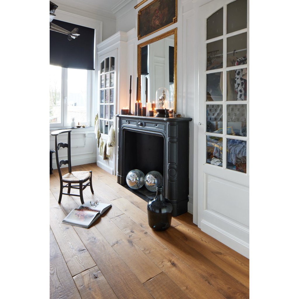 Vďaka použitým jedinečným mechanickým a ručným postupom dosahuje táto podlaha výnimočný vzhľad a pocit. Kované zrezané hrany vytvárajú nepravidelné okraje, intenzívne kefovanie reprodukuje efekt starnutia a sotva viditeľné stopy po píle alebo odreniny. Vyberte si medzi povrchovou úpravou Aged, Rustic, Chevron alebo Herringbone: nechajte parkety stať sa stredobodom vašich najinšpiratívnejších nábytkových kúskov a splňte si svoje najdivokejšie sny o interiérovom dizajne.