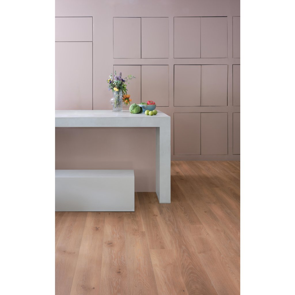 Vďaka použitým jedinečným mechanickým a ručným postupom dosahuje táto podlaha výnimočný vzhľad a pocit. Kované zrezané hrany vytvárajú nepravidelné okraje, intenzívne kefovanie reprodukuje efekt starnutia a sotva viditeľné stopy po píle alebo odreniny. Vyberte si medzi povrchovou úpravou Aged, Rustic, Chevron alebo Herringbone: nechajte parkety stať sa stredobodom vašich najinšpiratívnejších nábytkových kúskov a splňte si svoje najdivokejšie sny o interiérovom dizajne.