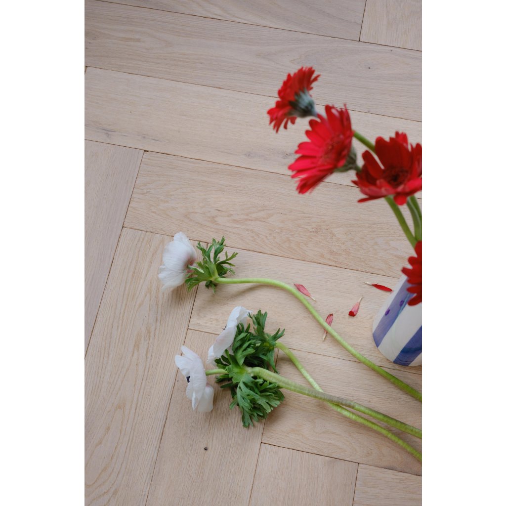 Vďaka použitým jedinečným mechanickým a ručným postupom dosahuje táto podlaha výnimočný vzhľad a pocit. Kované zrezané hrany vytvárajú nepravidelné okraje, intenzívne kefovanie reprodukuje efekt starnutia a sotva viditeľné stopy po píle alebo odreniny. Vyberte si medzi povrchovou úpravou Aged, Rustic, Chevron alebo Herringbone: nechajte parkety stať sa stredobodom vašich najinšpiratívnejších nábytkových kúskov a splňte si svoje najdivokejšie sny o interiérovom dizajne.