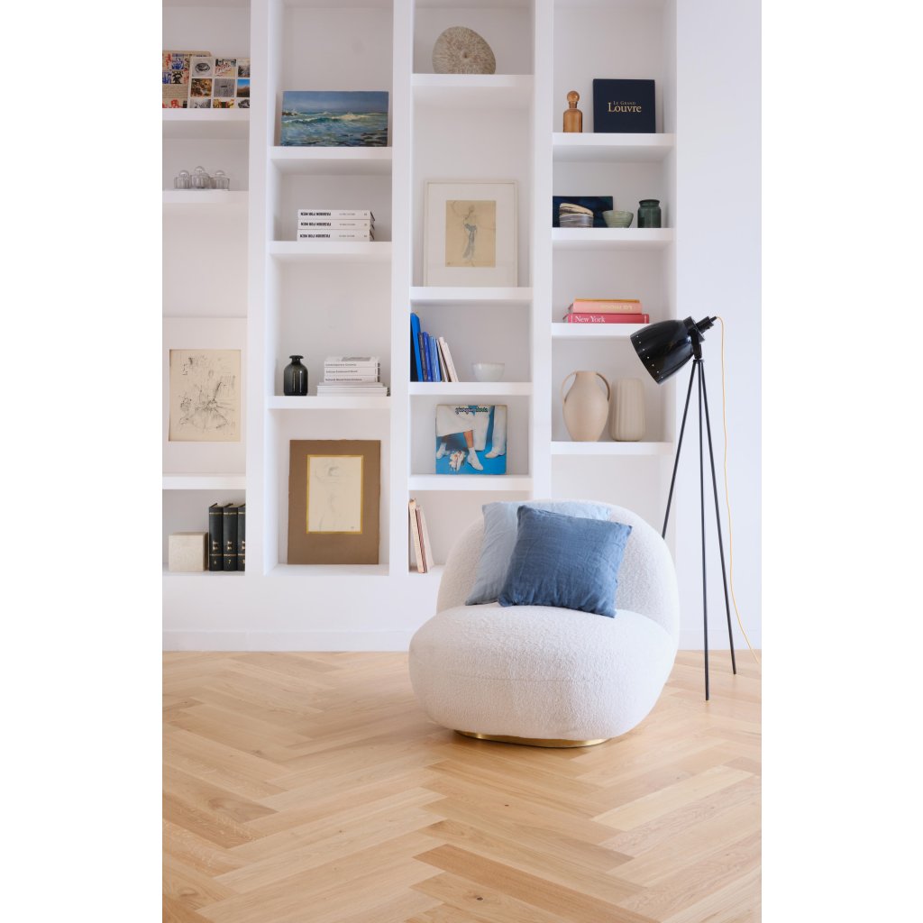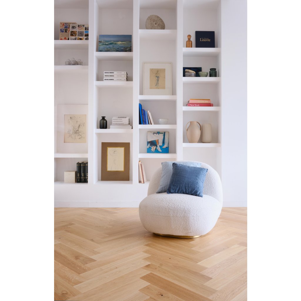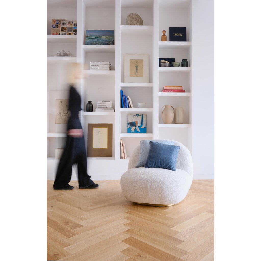 Vďaka použitým jedinečným mechanickým a ručným postupom dosahuje táto podlaha výnimočný vzhľad a pocit. Kované zrezané hrany vytvárajú nepravidelné okraje, intenzívne kefovanie reprodukuje efekt starnutia a sotva viditeľné stopy po píle alebo odreniny. Vyberte si medzi povrchovou úpravou Aged, Rustic, Chevron alebo Herringbone: nechajte parkety stať sa stredobodom vašich najinšpiratívnejších nábytkových kúskov a splňte si svoje najdivokejšie sny o interiérovom dizajne.