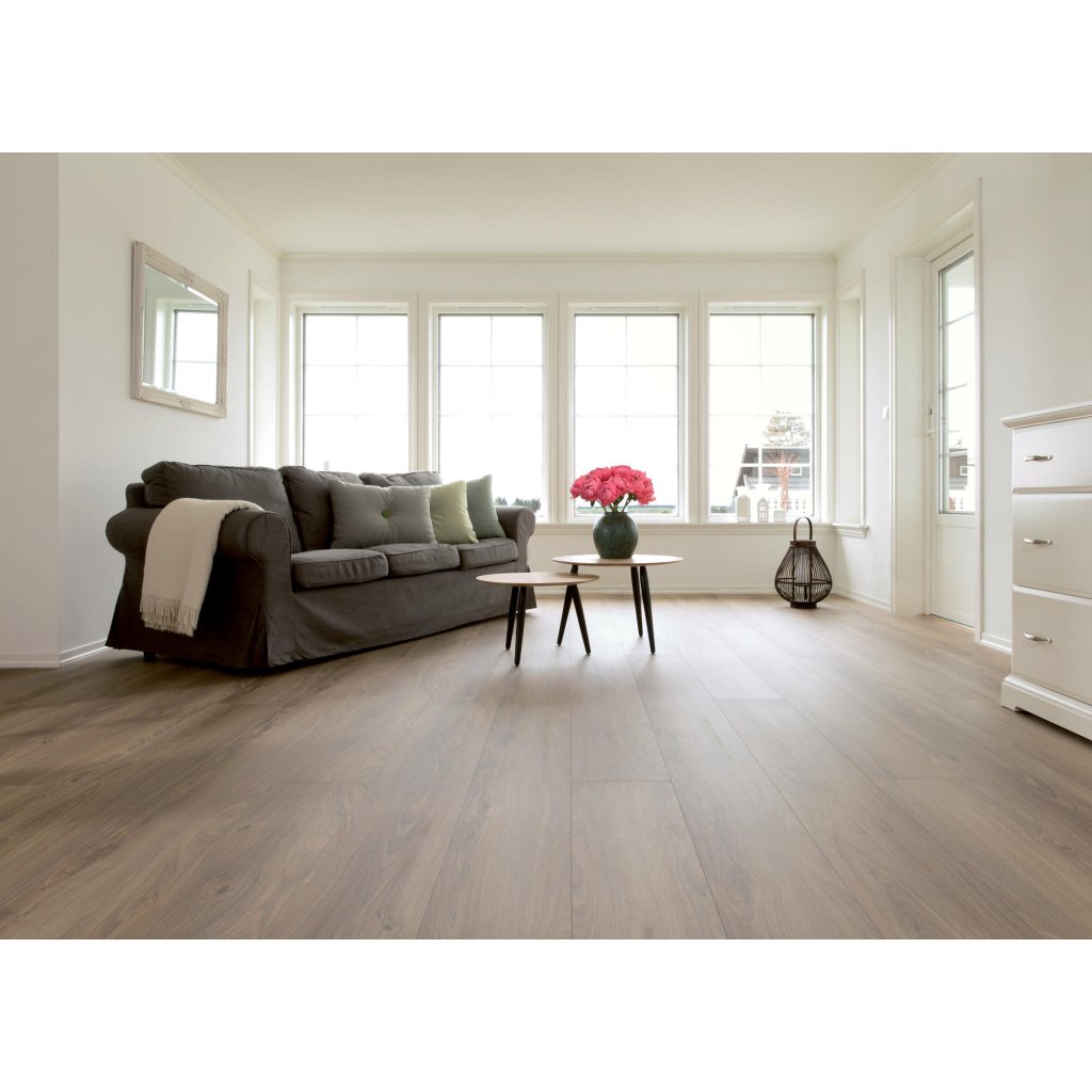 Hrubá, vysoko kvalitná vrchná vrstva vysokotlakových podláh sa skladá z viacerých vrstiev a má mimoriadne odolný ochranný povrch. Odolá silným nárazom a zostane bez škrabancov a poškodenia.