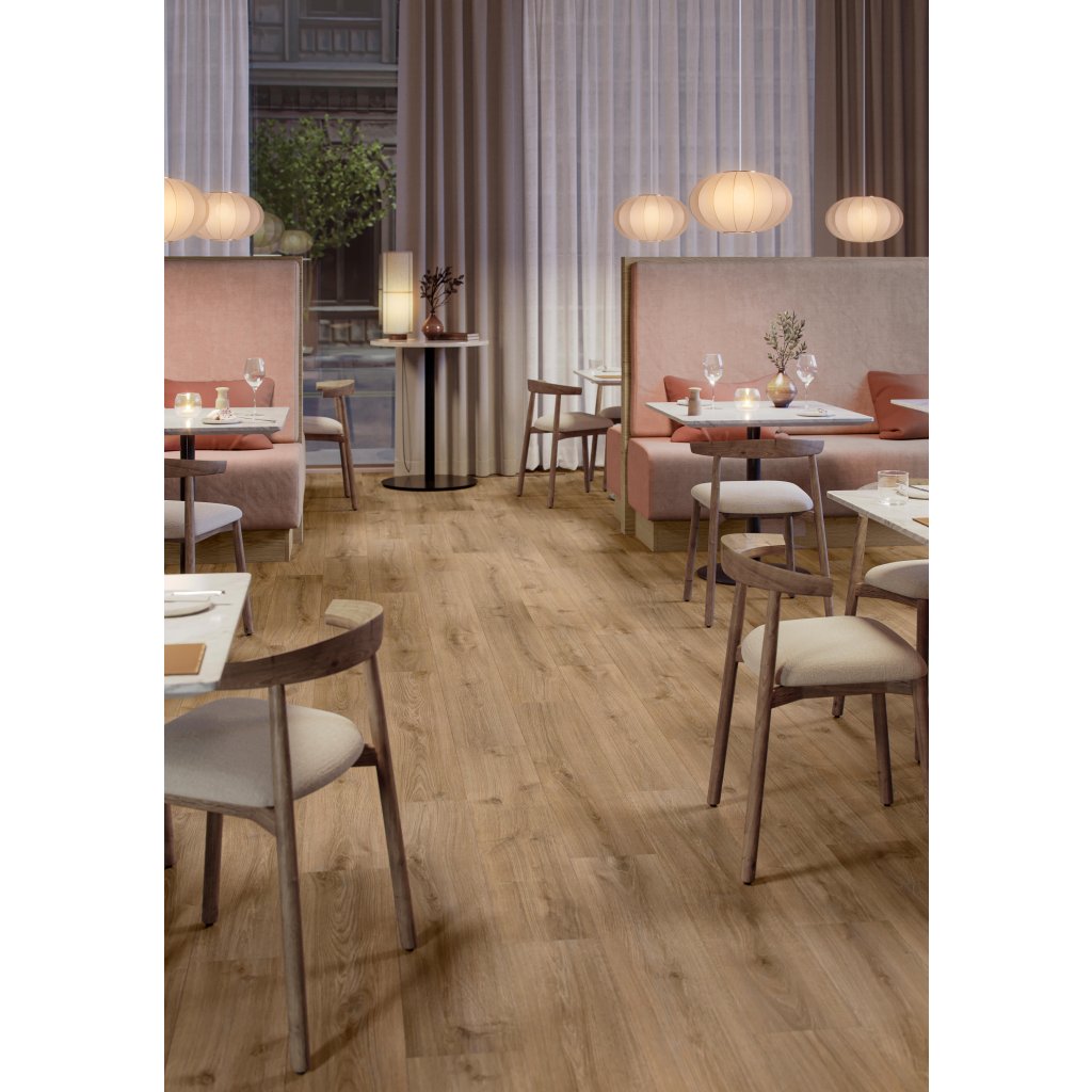 Hrubá, vysoko kvalitná vrchná vrstva vysokotlakových podláh sa skladá z viacerých vrstiev a má mimoriadne odolný ochranný povrch. Odolá silným nárazom a zostane bez škrabancov a poškodenia.